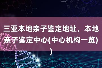 以下是部分可在三亚进行司法移民亲子鉴定的机构和地址: